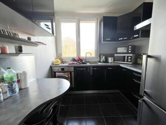 A deux pas de la Mairie et commerces, très beau 3 pièces en étage offrant une superbe vue dégagée, et comprenant : entrée avec placards, cuisine équipée + cellier, Séjour + salon (27 m²) ouvrant sur loggia (4 m²), dégagement avec placard, chambre, salle d'eau récente, toilettes. Possibilité de revenir à séjour de 17 m² avec 2 chambres (distribution d'origine). Cave et Box auto.