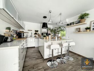 Appartement comprenant : entrée, d’une cuisine ouverte sur un double séjour de 40 m² avec une belle hauteur sous plafond, quatre chambres dont une suite parentale avec sa salle de douche, une salle de bains et deux WC. Deux places de parking en sous-sol.